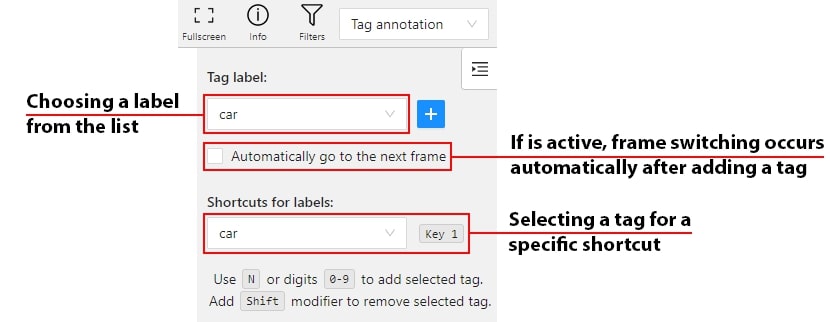 Before you start, open the drop-down list in the top panel and select Tag annotation.