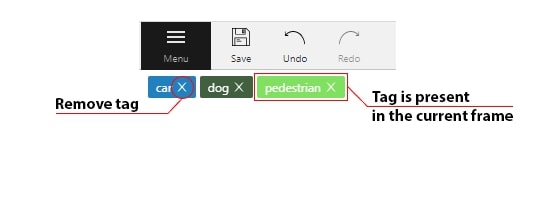 It is used to annotate frames, tags are not displayed in the workspace.