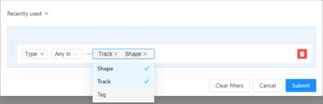 Type | shape, track or tag | type of object |