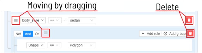 If there is more than one rule in the group, they can be connected by And or Or operators.