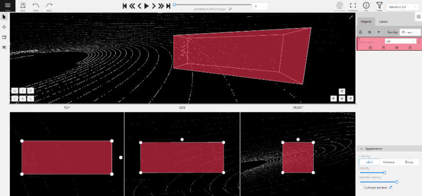 Use the 3D Annotation tool for labeling 3D objects and scenes, such as vehicles, buildings, landscapes, and others.